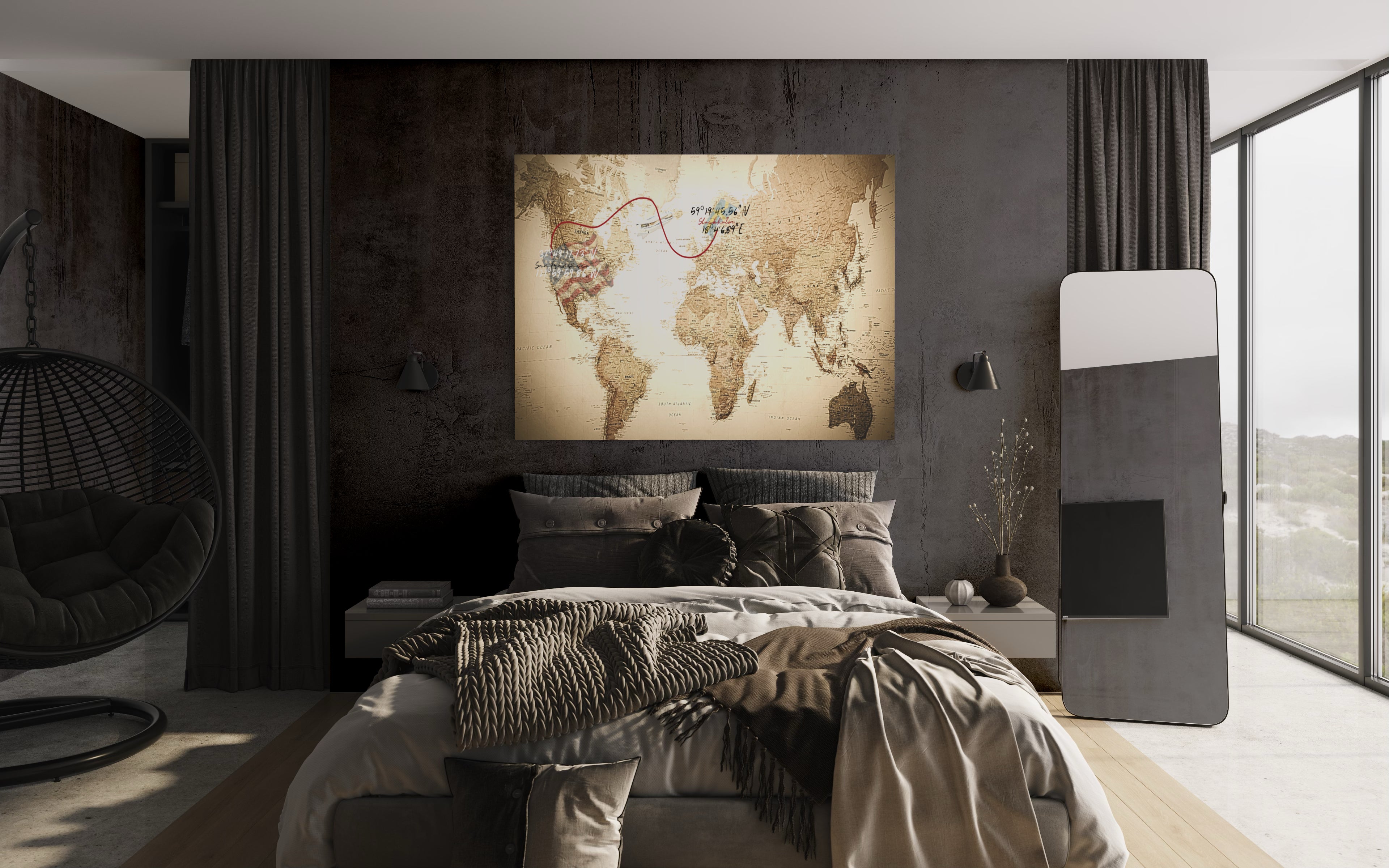 Capture the essence of love that knows no distance with our unique world map canvas. Featuring a red string connecting two countries, this art piece beautifully symbolizes the unbreakable bond between two souls, no matter the miles apart. Perfect for those in long-distance relationships or anyone cherishing connections that span the globe. Let love transcend borders with our meaningful canvas – a heartfelt addition to your space.