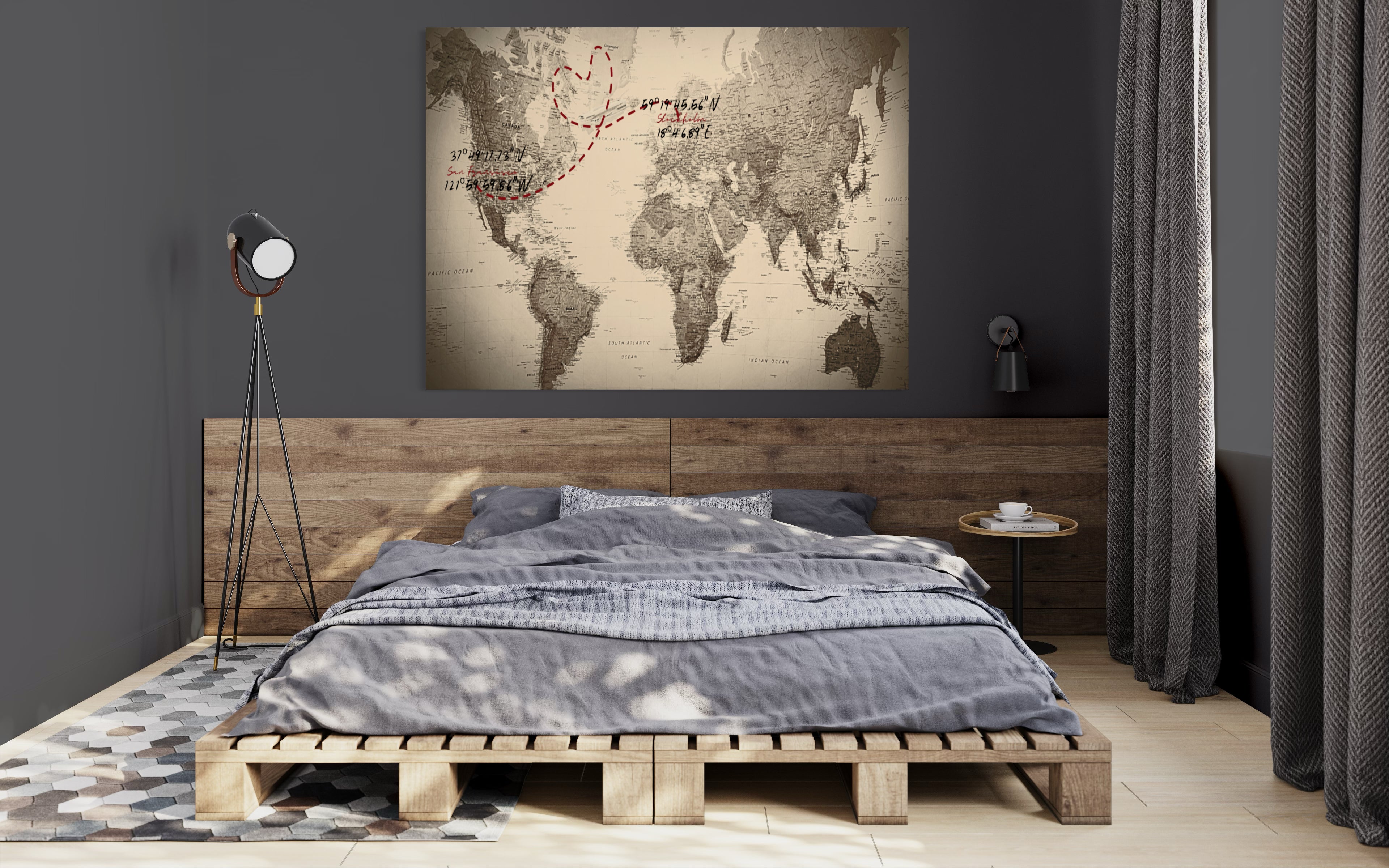 Capture the essence of love that knows no distance with our unique world map canvas. Featuring a red string connecting two countries, this art piece beautifully symbolizes the unbreakable bond between two souls, no matter the miles apart. Perfect for those in long-distance relationships or anyone cherishing connections that span the globe. Let love transcend borders with our meaningful canvas – a heartfelt addition to your space.