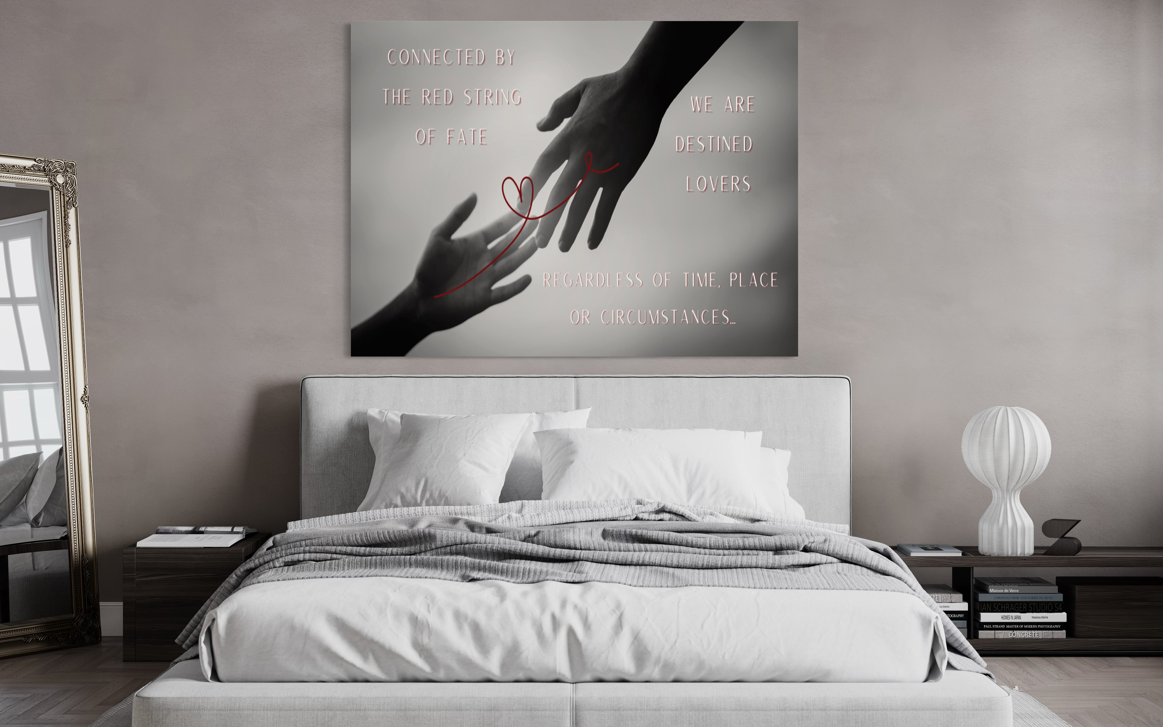 The two people connected by the red string are destined lovers connected by the universe. Legend has is that two people connected by this thread will have an important story, regardless of place, time or circumstances. The red string might get tangled, contracted or stretch, as surely often happens, but will never brake